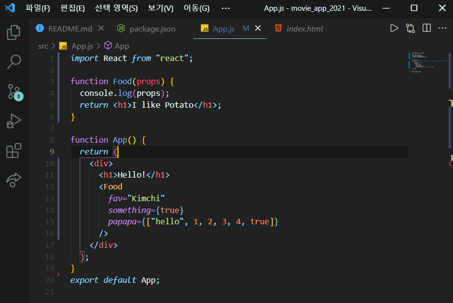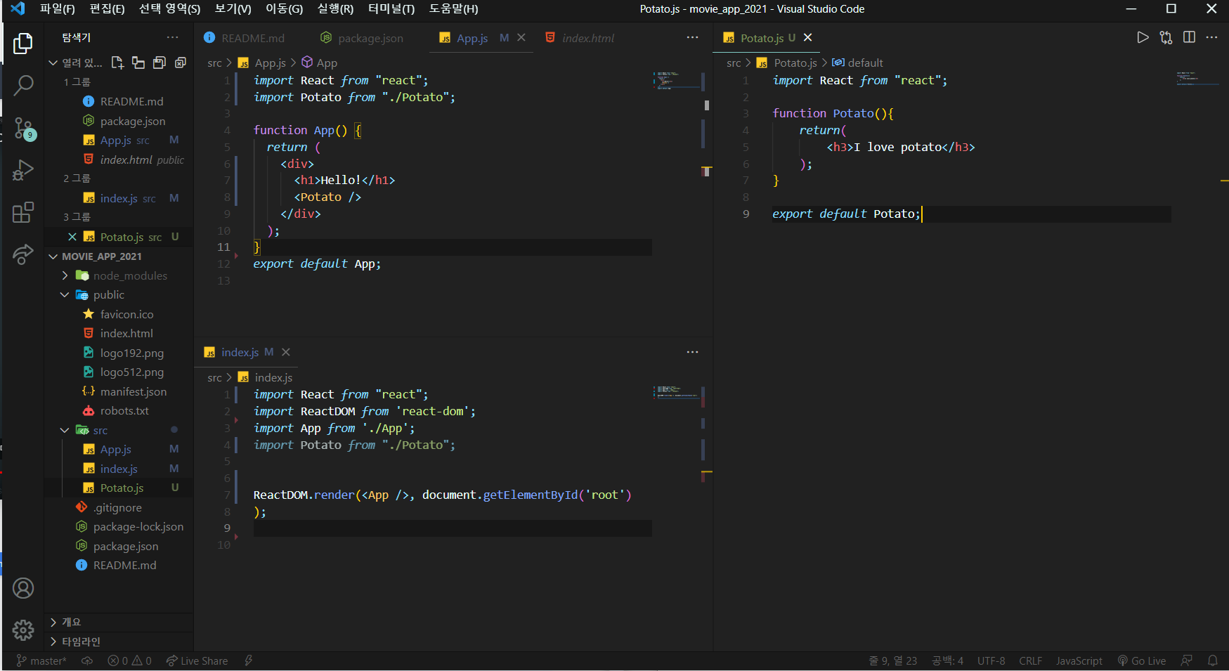 src폴더 안에 Potato.js 파일을 작성해보자.