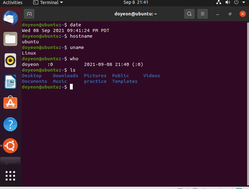 $ ls : 현재 디렉토리의 파일 리스트 출력