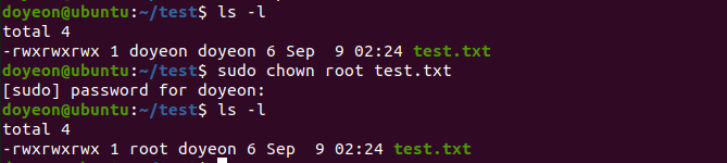 변경하려는 owner가 root이기 때문에 sudo를 사용한다.