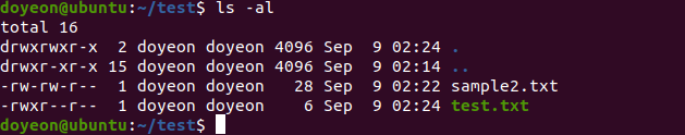 파일 및 폴더의 권한은 셸에서 ls -al 명령을 통해 확인할 수 있다.