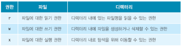 앞의 rwx는 소유자, 두번째 rwx는 그룹, 마지막 rwx는 기타 사용자에 대한 접근 권한이다.