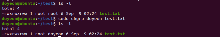 chgrp [변경할 그룹] [파일명] 을 하면 그룹명이 바뀐다.