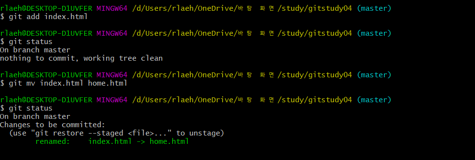 git rm home.html 으로 기존 파일을 삭제하고,