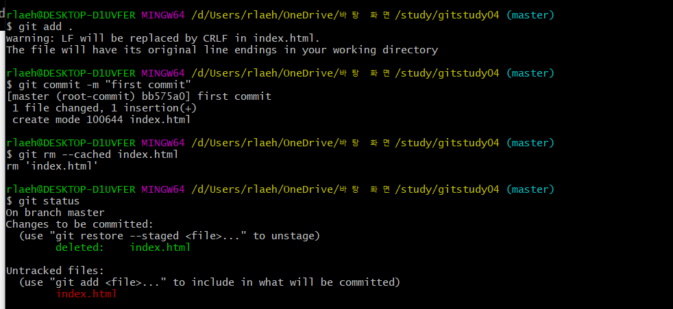 한번이라도 commit후 rm 명령은 삭제 또는 수정으로 간주한다.