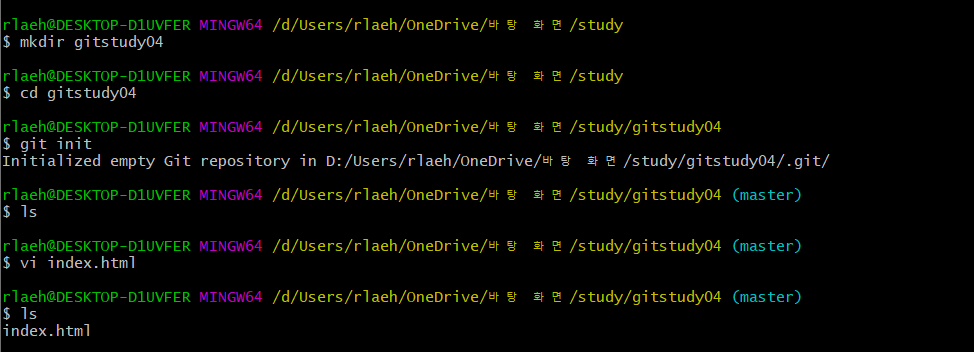 저장소를 생성하기 위해 초기화 작업을 한다. 초기화 한 후 새 파일을 생성한다.
