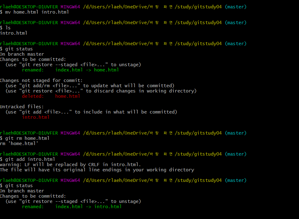 git add intro.html 으로 새 이름 파일을 등록하는 것과 같다.