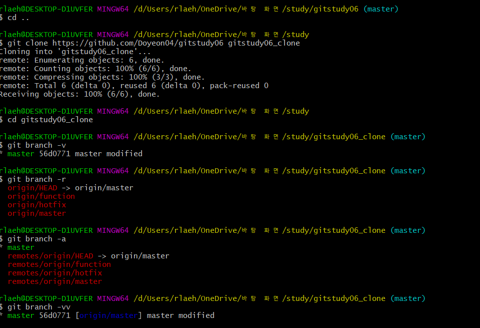 git clone을 해 브랜치를 확인해 보면 remote repository의 모든 branch정보를 다 가져오지는 않는다.
