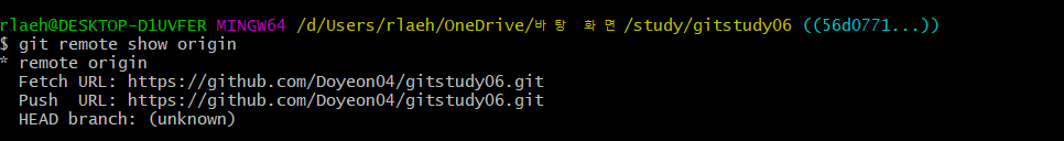 gitstudy06_clone폴더에서 두번째 줄을 추가하고 원격 레퍼지토리에 push 한 후,