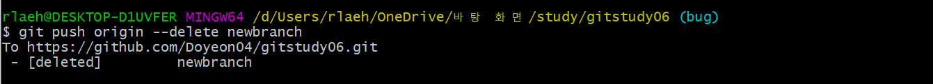 현재 브랜치에서는 삭제할 수 없고 다른 브랜치로 이동 후 삭제해야한다.