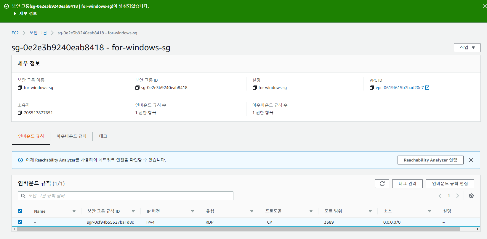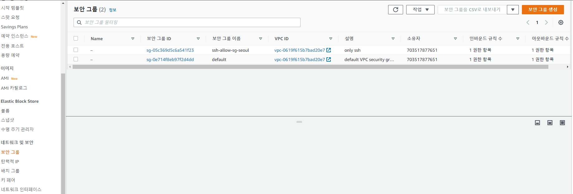 보안그룹 생성 완료
