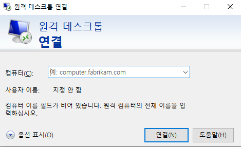 원격 데스크톱(윈도우만 가능)을 실행하고 ip주소 입력 - 연결