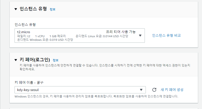 기존에 생성했던 키 페어 선택
