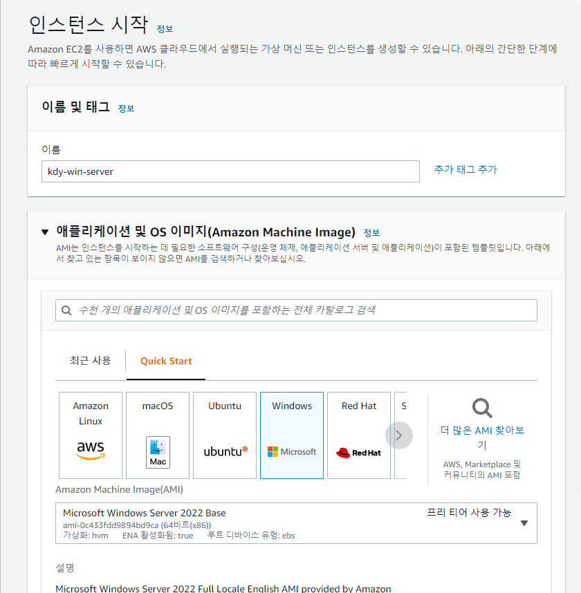 vpc는 기본 vpc로 하고 인바운드 규칙을 RDP, Anywhere-IPv4 로 설정후 보안 그룹 생성 클릭