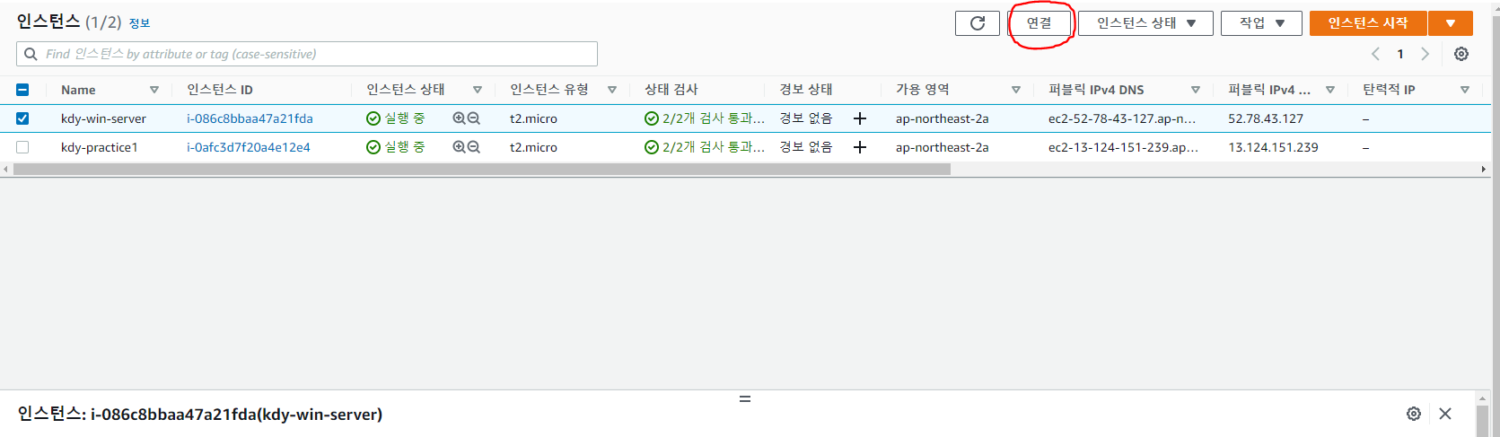 생성한 보안 그룹을 선택한 후 인스턴스 생성 클릭