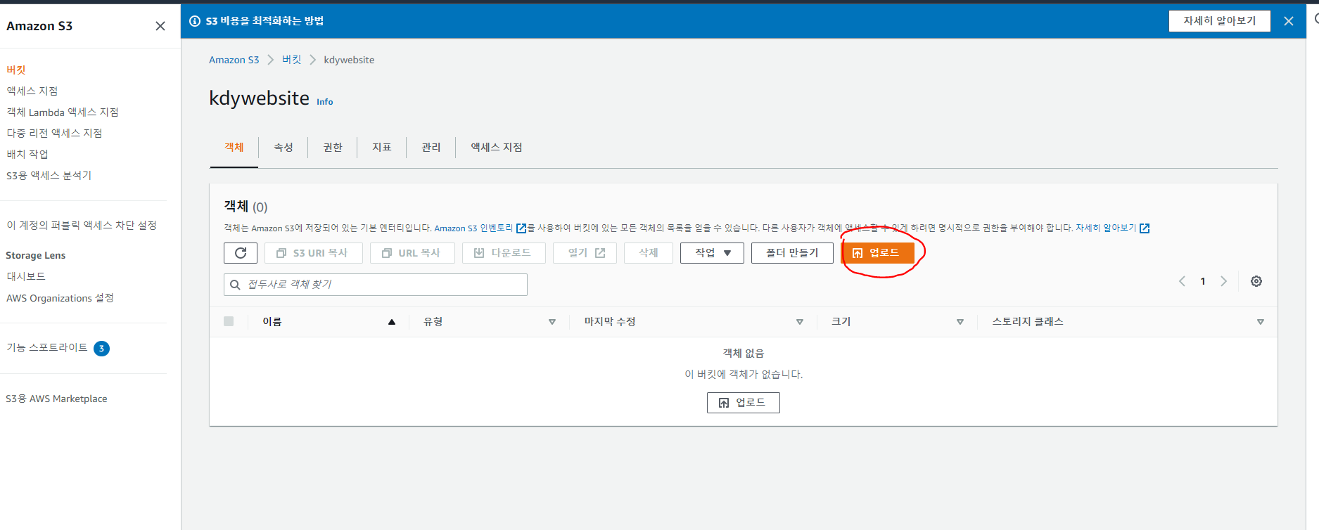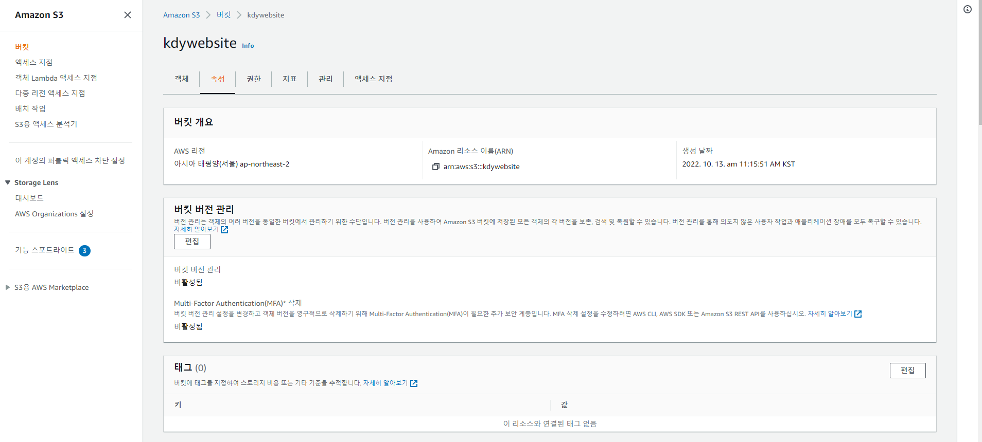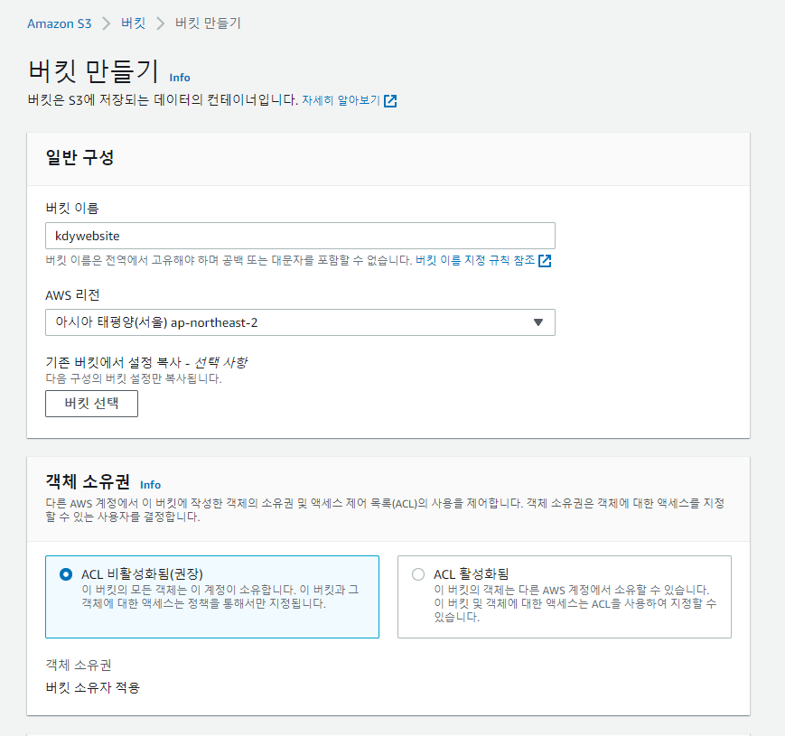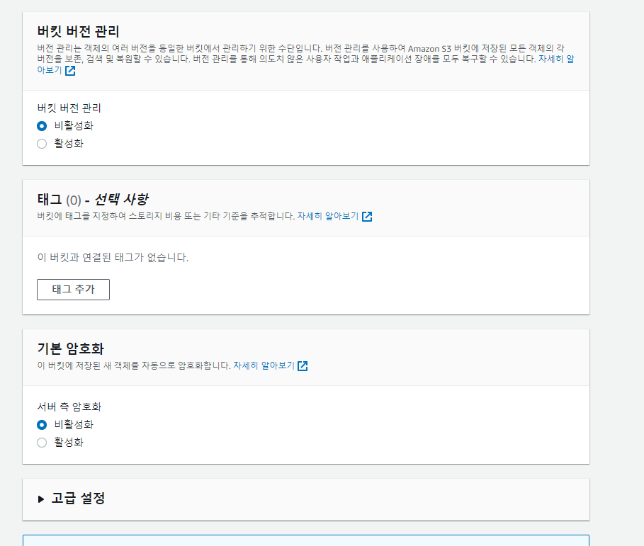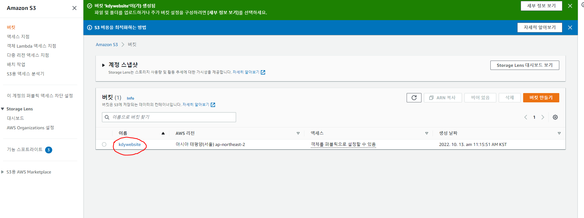 나머지는 그대로 두고 버킷 만들기 버튼을 클릭한다.