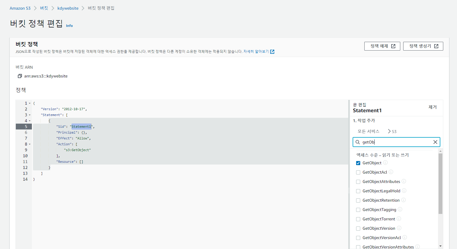 - 버킷 정책 추가