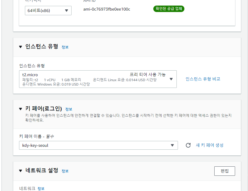 새로운 인스턴스를 만든다. Amazon Linux를 선택하고, 기존에 있는 키 페어를 선택한다.