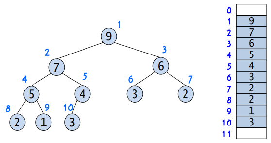 힙을 저장하는 표준적인 자료구조는 배열이다.
