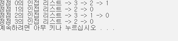 printf("정점 %d의 인접 리스트 ", i);