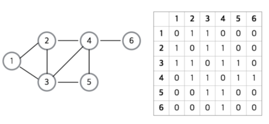 간선 (i, j)가 그래프에 존재할 경우 `M[i][j] = 1` , 아닐 경우 `M[i][j] = 0`으로 표현한다.
