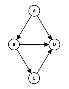 간선에 방향성이 존재하는 그래프로서 간선을 통하여 한 쪽 방향으로만 갈 수 있다.