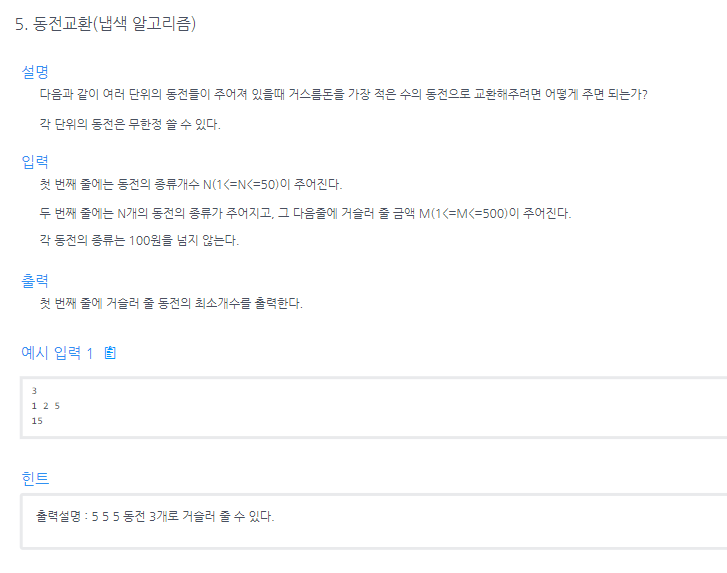 dp[j] = Math.min(dp[j], dp[j-coin[i]]+1); // 더 큰 값의 동전으로 대체 할 수 있는지 비교