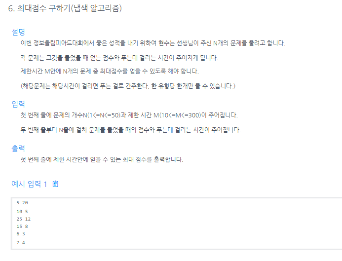 int[] dp = new int[m+1]; // dp[i] = i분 동안 풀 수 있는 최대 점수