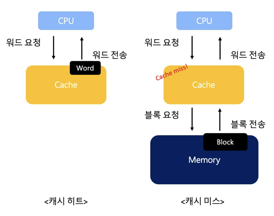 캐시 히트: 자주 사용될 것으로 예측한 데이터가 들어맞아 캐시 메모리 내 데이터가 CPU에서 활용될 경우