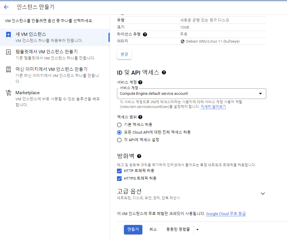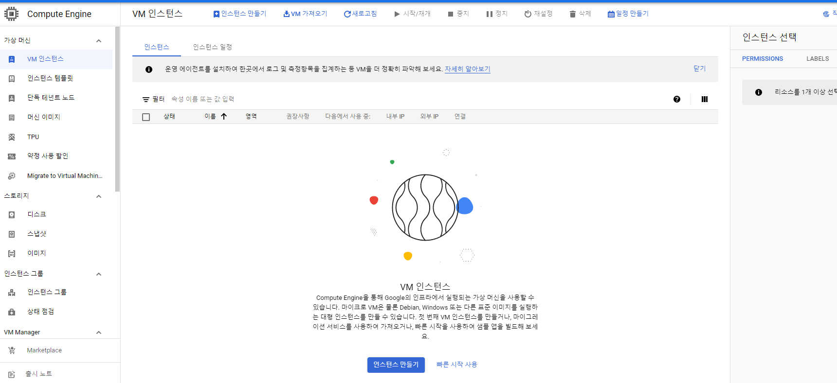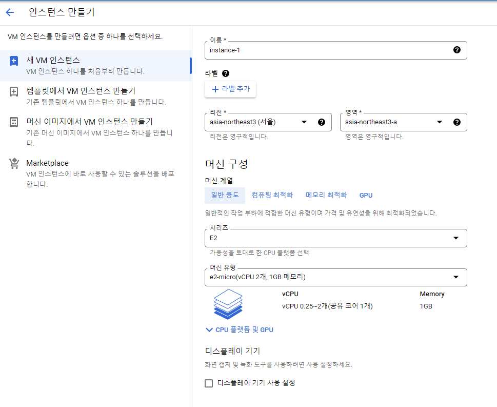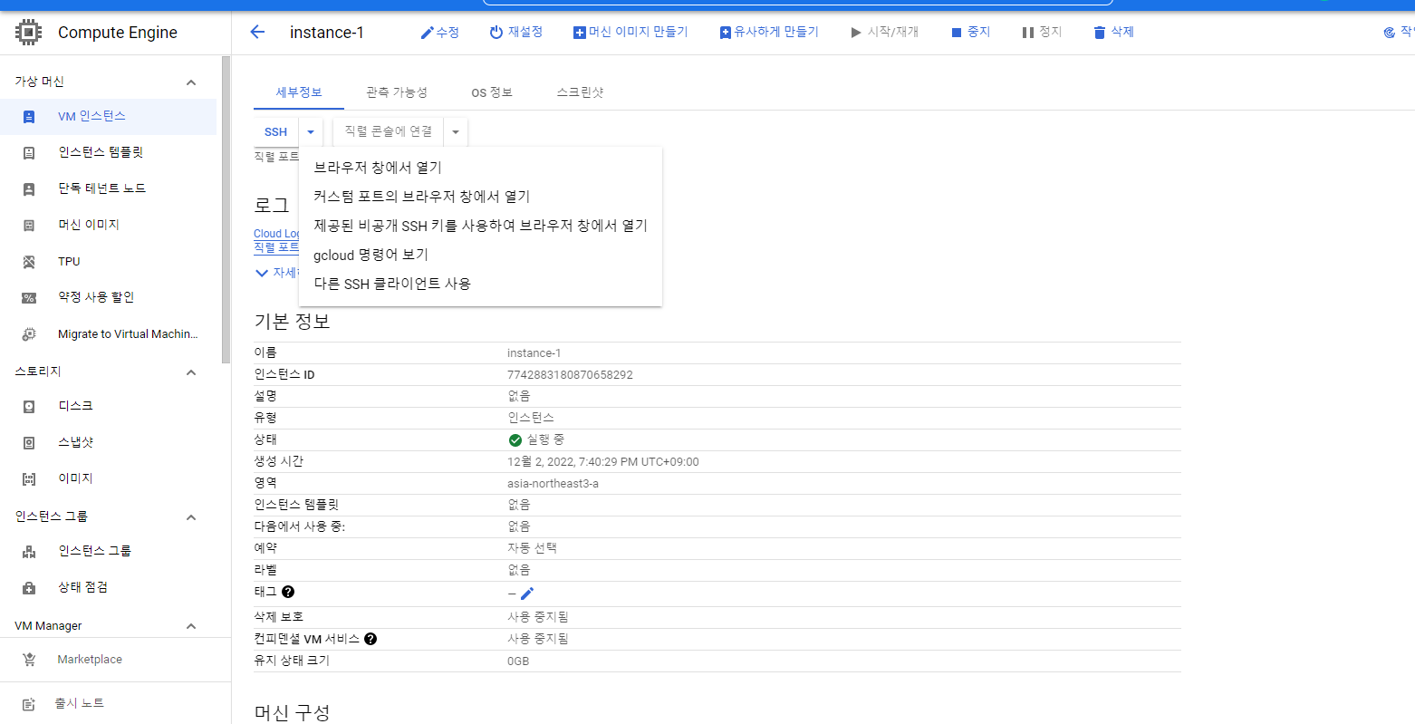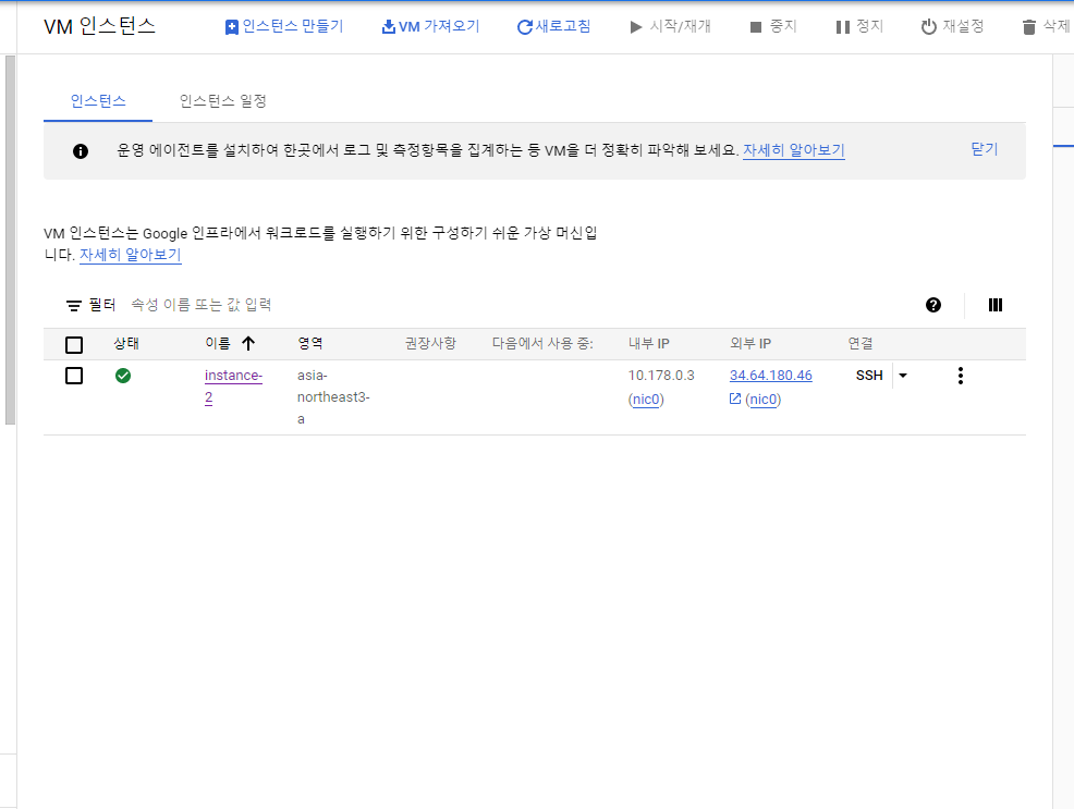 Compute Engine -> VM 인스턴스