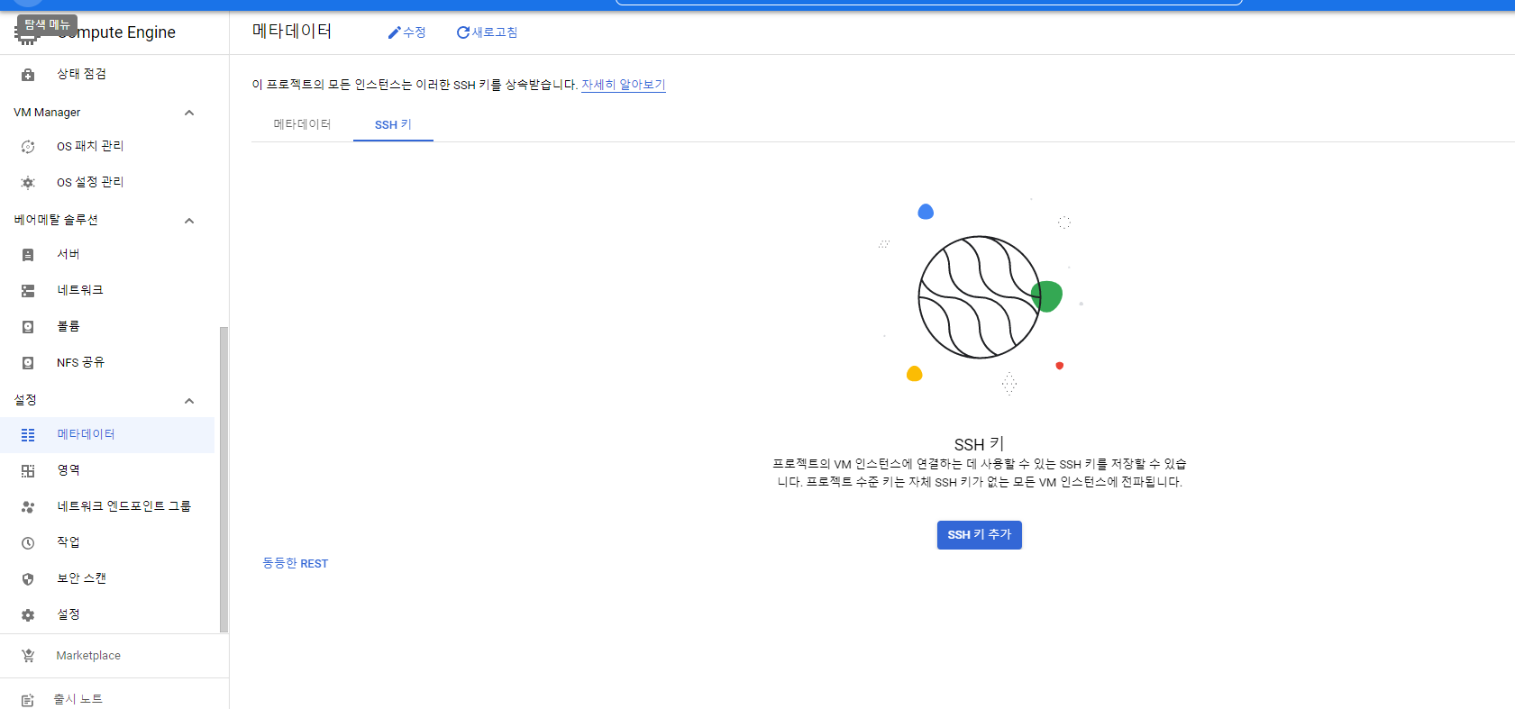 설정-메타데이터-SSH 키 추가