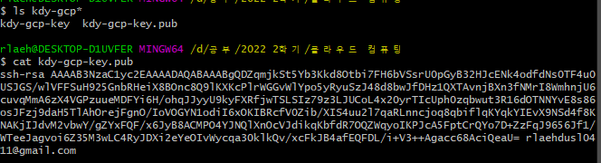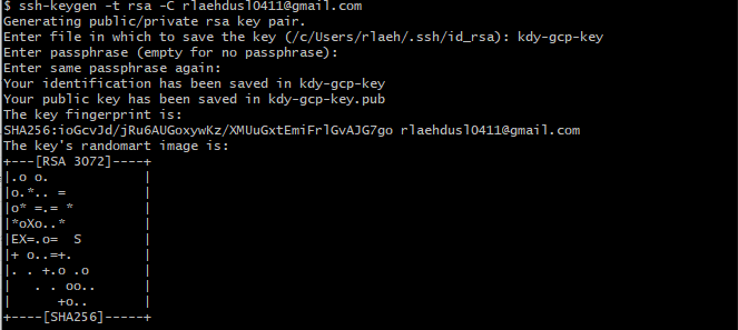 RSA 키 생성: ssh-keygen -t rsa -C [구글 계정]