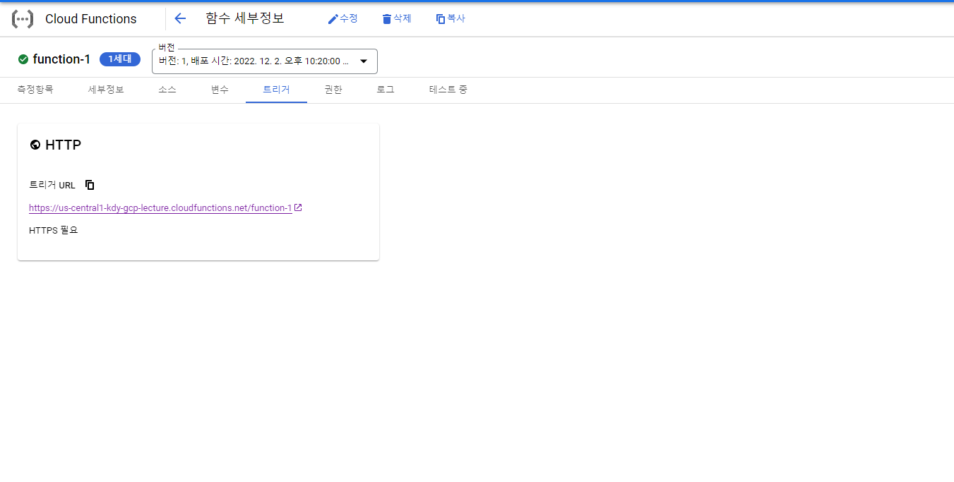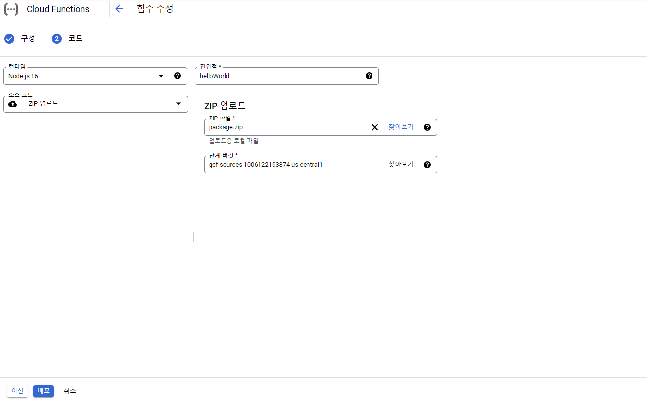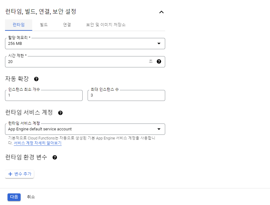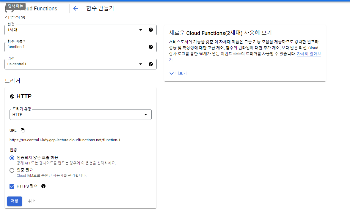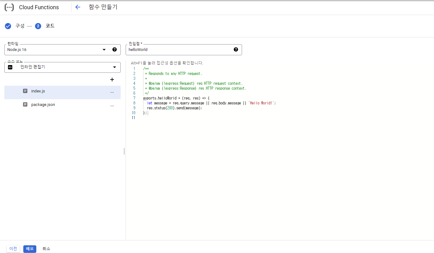 메뉴-모든제품 보기- 서버리스 - Cloud Functions-함수 만들기