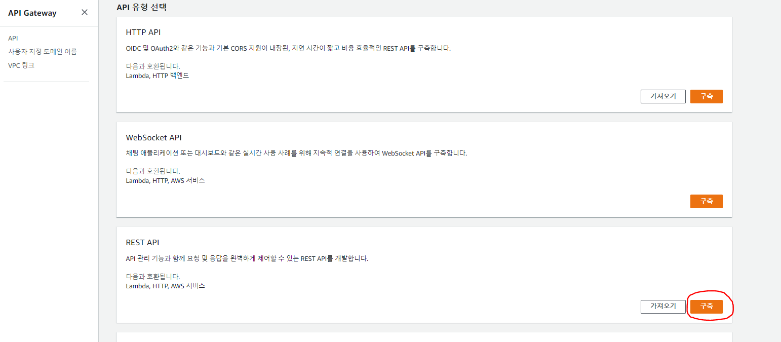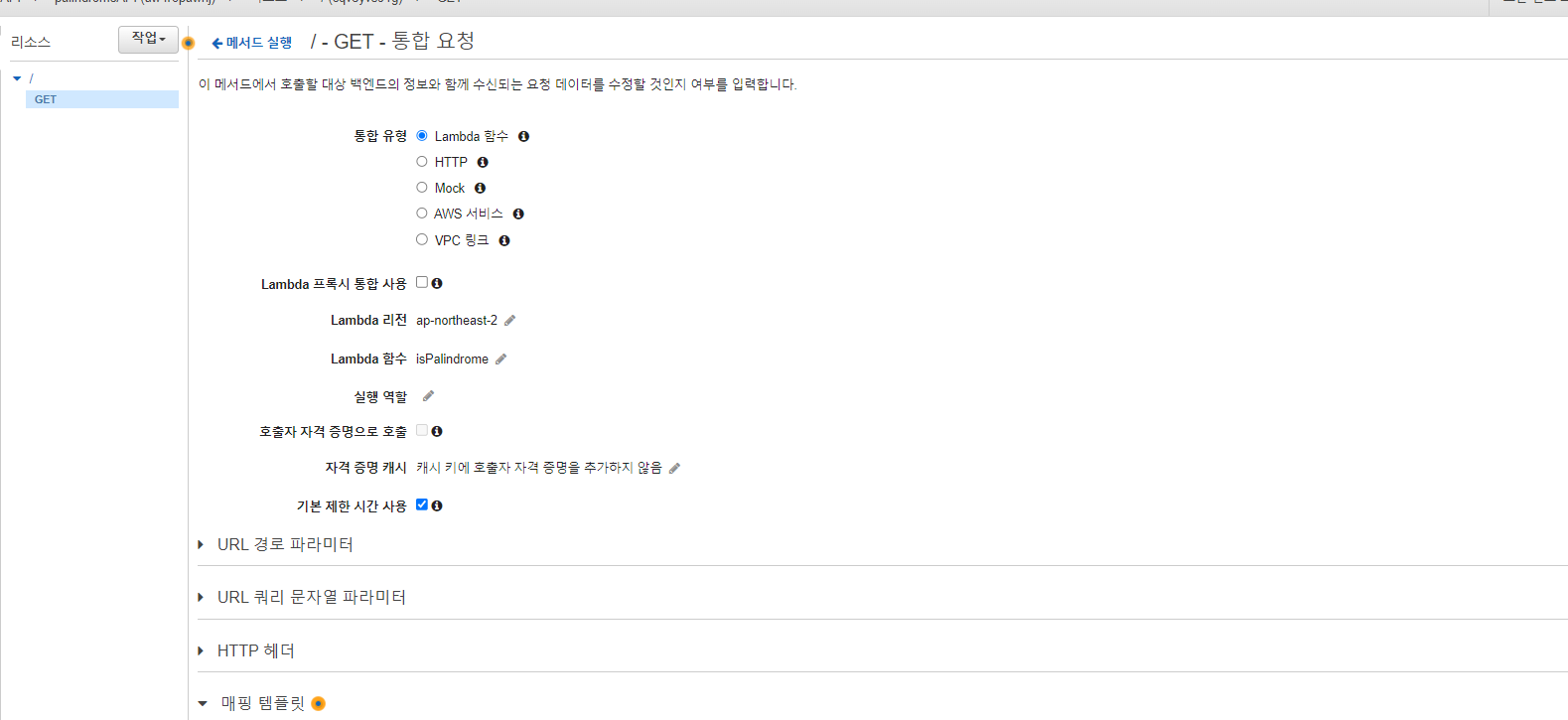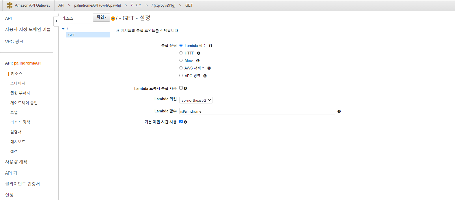 리소스 → 작업 → 메소드 생성 → GET → v (check)