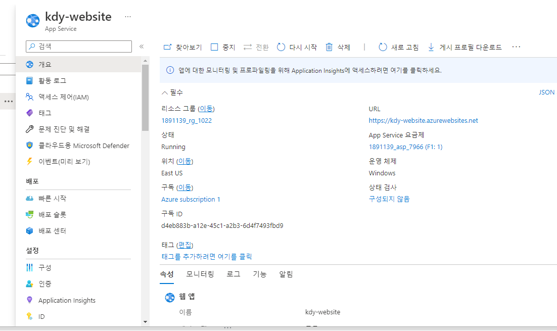 App Services 에서 앱 관리