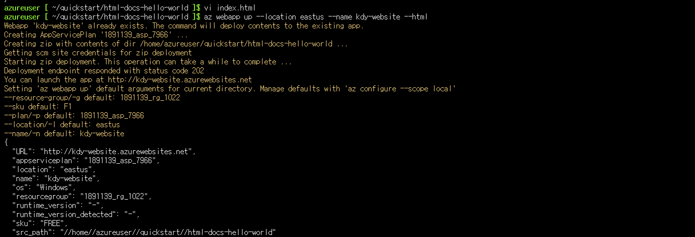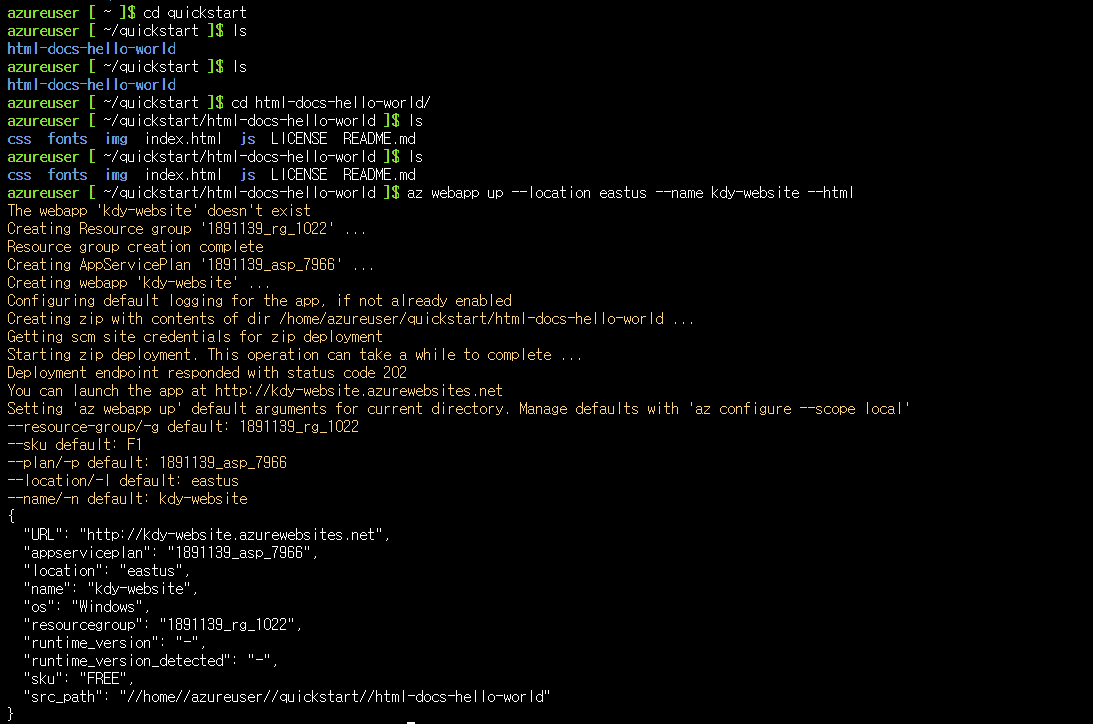 az webapp up --location eastus --name <app_name> --html