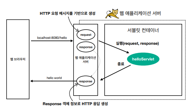 - http 요청 시 WAS 에서 요청 메세지를 기반으로 request, response 객체를 새로 만듬