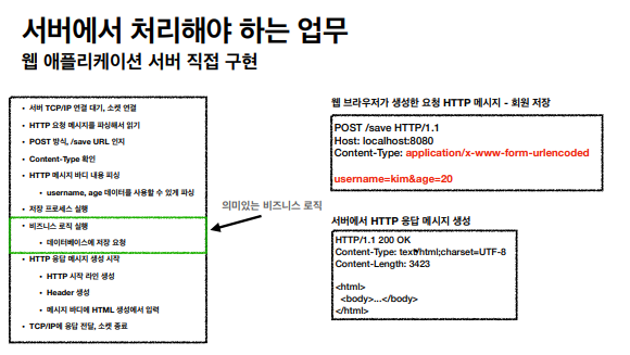 - HTTP 요청이 오면 프로그램 코드를 실행해서 애플리케이션 로직 수행