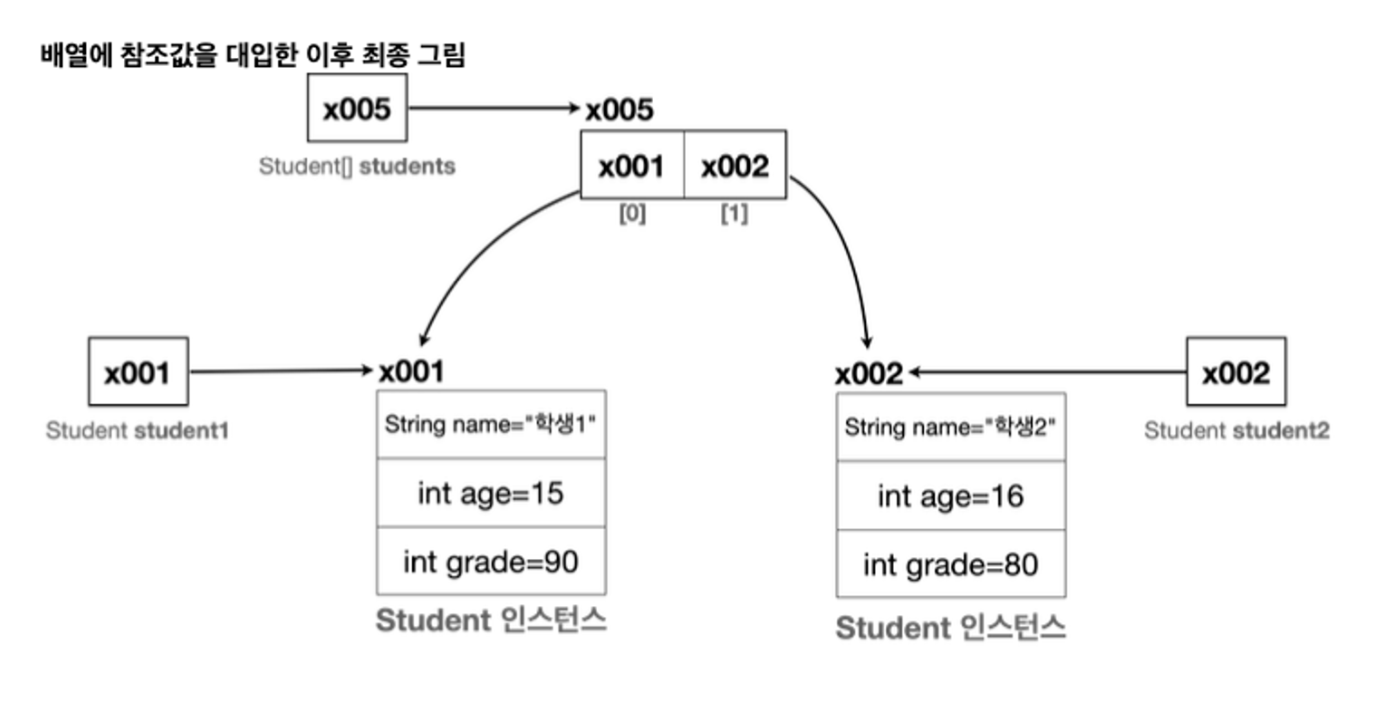 Student student1 = x001; // 2. new Student() 결과로 x001 참조값 반환해 저장