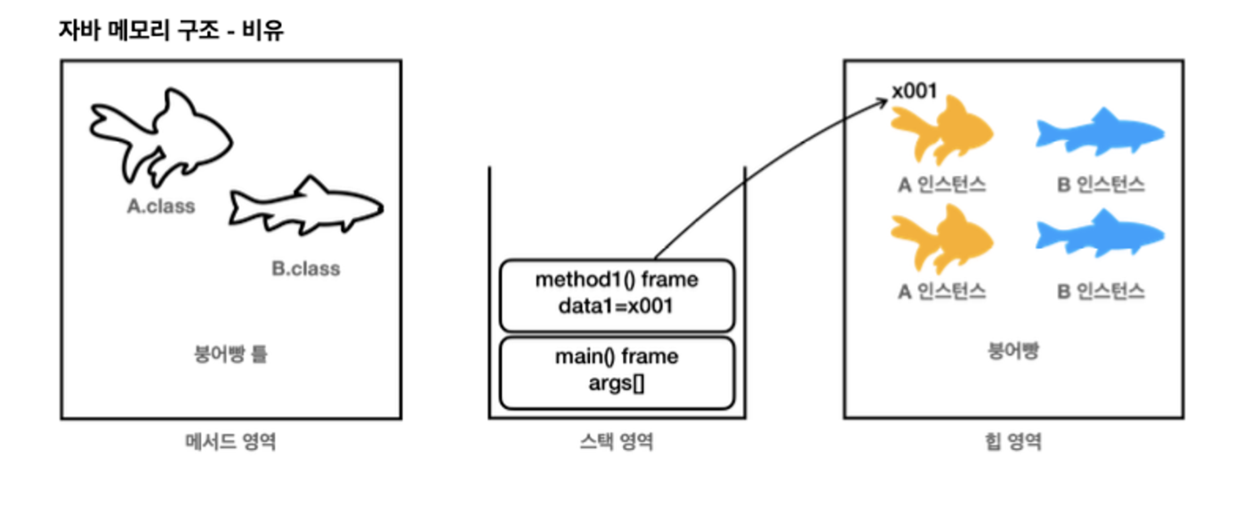 - 힙 영역: 객체(인스턴스)가 생성되는 영역 (new 키워드)