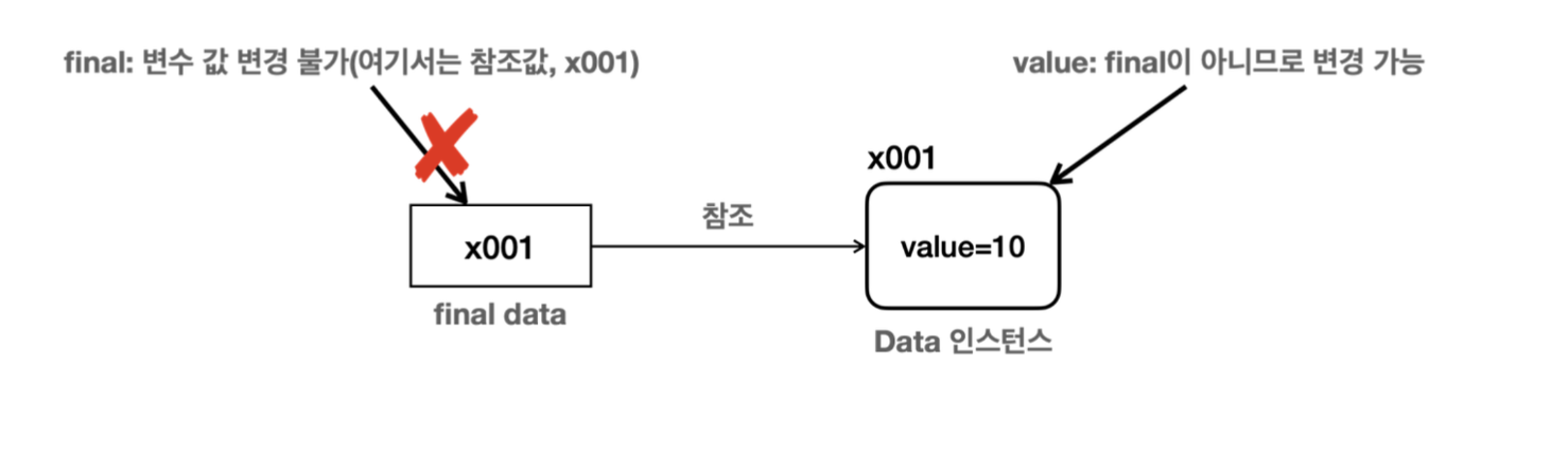 참조형 변수에 final이 붙으면 참조 값 변경 불가