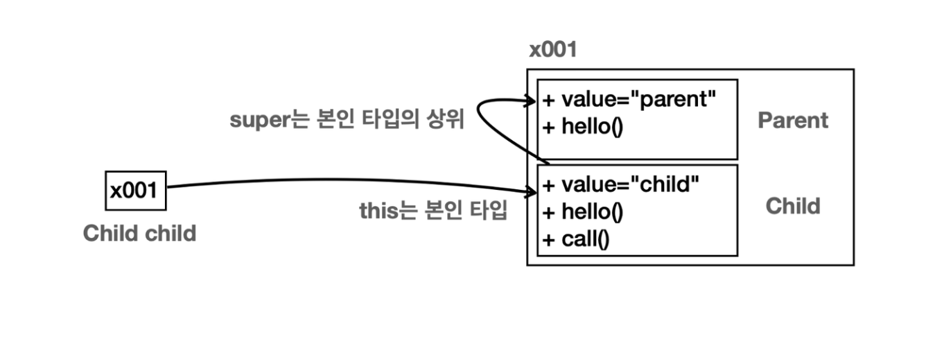 (참조값은 하나지만 그 안에 두가지 클래스 정보가 공존)