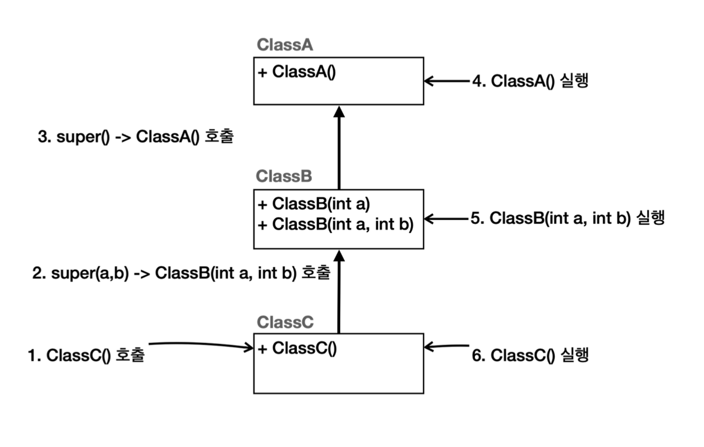 - 자식 클래스의 생성자 첫줄에 반드시 super(..) 를 호출해야 한다.