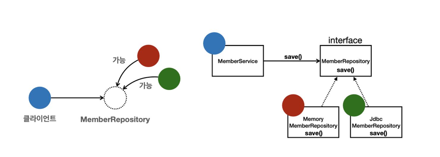 MemberService 클라이언트는 MemberRepository를 의존