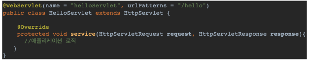 - HttpServlet을 상속받으면 url이 호출되었을 때 service() 메소드(애플리케이션 로직 작성하는 부분)가 실행됨