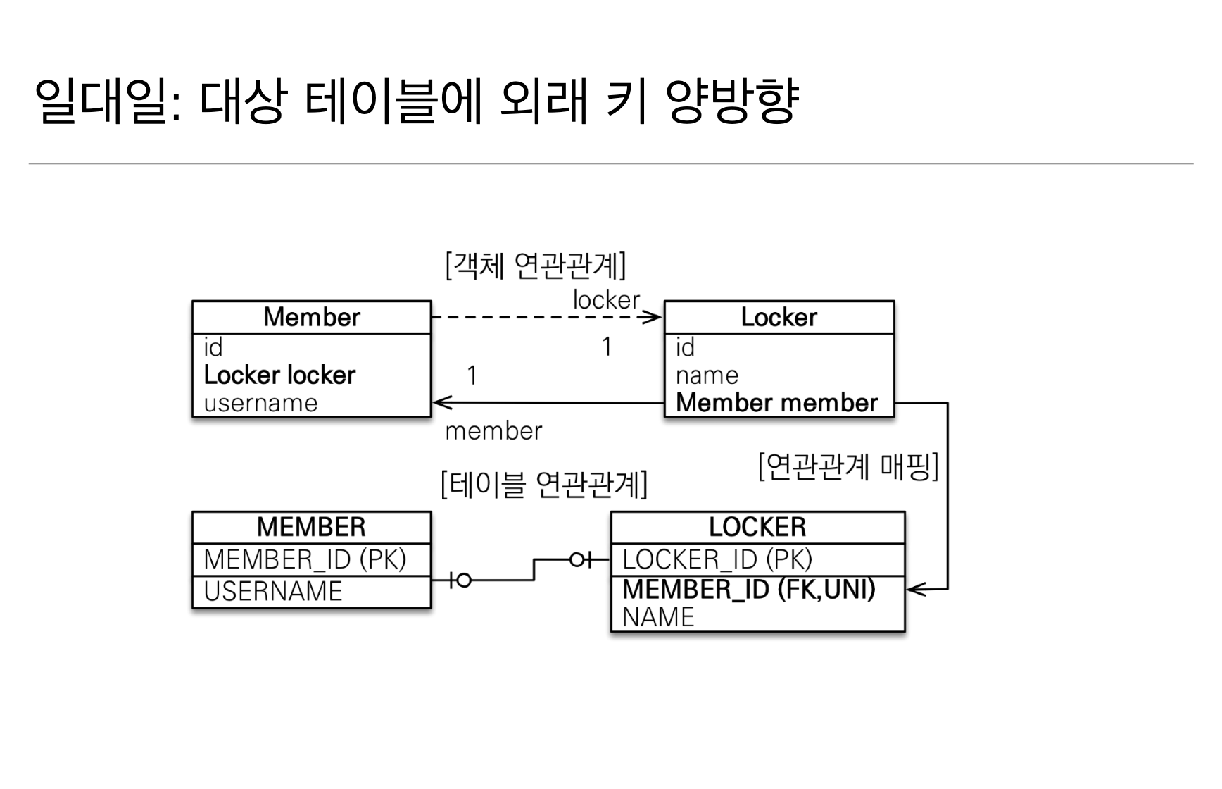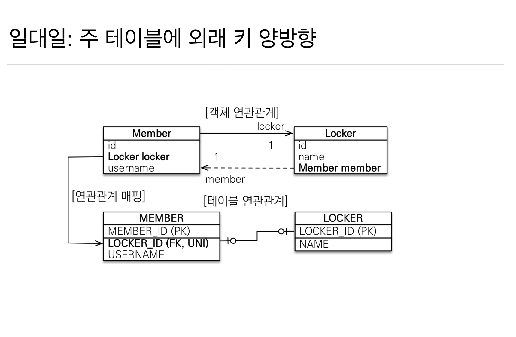 Member에 LOCKER_ID 외래키를 넣어도 되고, Locker에 MEMBER_ID 외래키를 넣어도 된다.