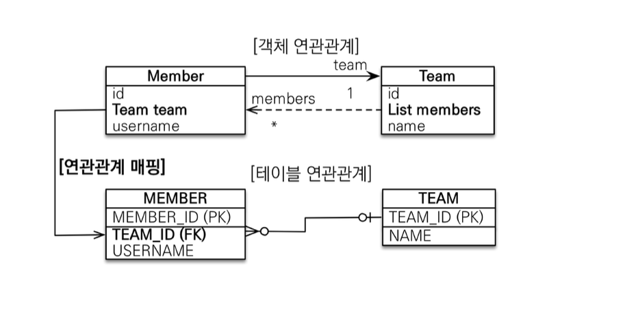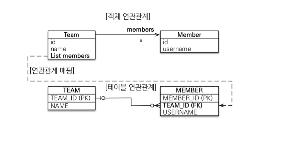 객체는 컬렉션을 사용해 객체 두개로 다대다 관계가 가능하다.