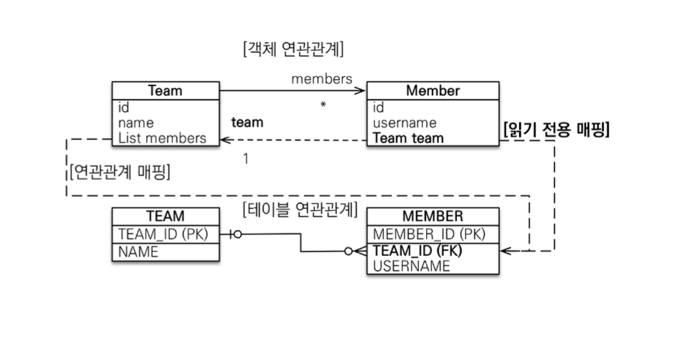- 주인의 반대편: 외래 키에 영향을 주지 않고 단순 조회만 가능