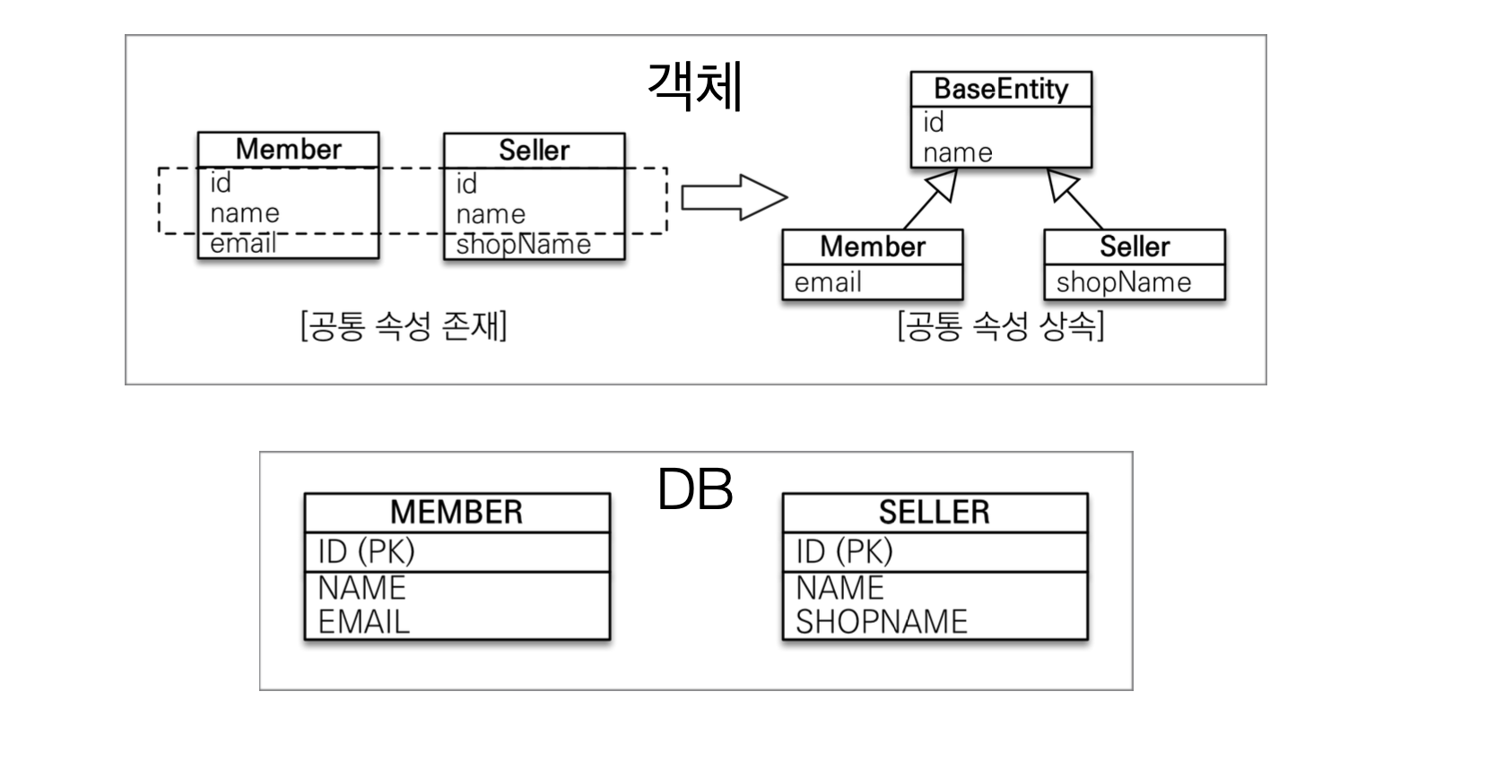 - 각각 테이블로 변환 : 조인 전략
