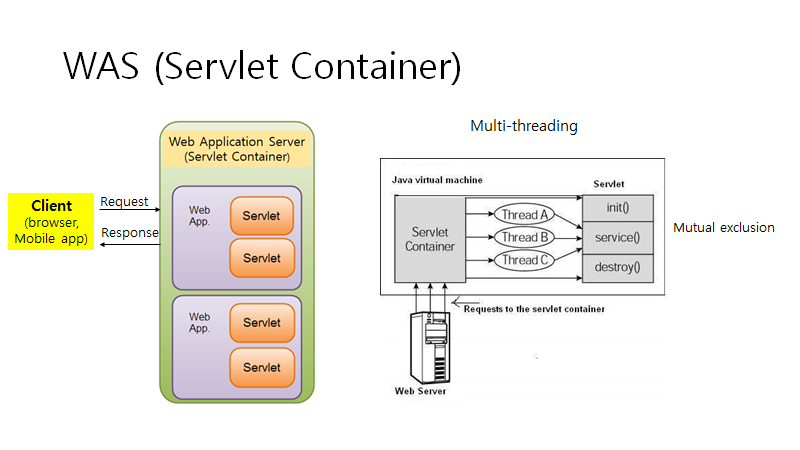 2. WAS가 가지고 있는 Servlet은 동적인 처리를 담당하는 클래스이다. 자바기반의 언어로, JVM위에서 동작한다.