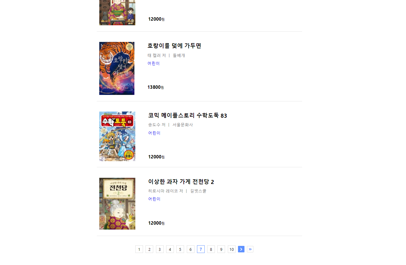 출판사, 저자, 책 이름별 검색시 필터링해 검색 단어가 포함된 책을 한 페이지 안 책의 개수만큼 렌더링하게 해줬다.